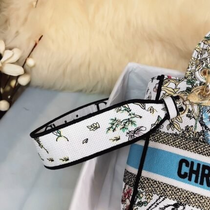 Dior Lady D-Lite Medium Bag Fake in White Jardin Botanique Embroidery