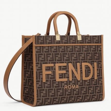 Top Quality Knockoff Fendi Sunshine Medium Tote Bag in Brown FF Jacquard Fabric