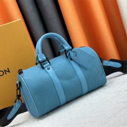 Louis Vuitton Taurillon Monogram Leather Keepall Bandouliere 25 In Turquoise