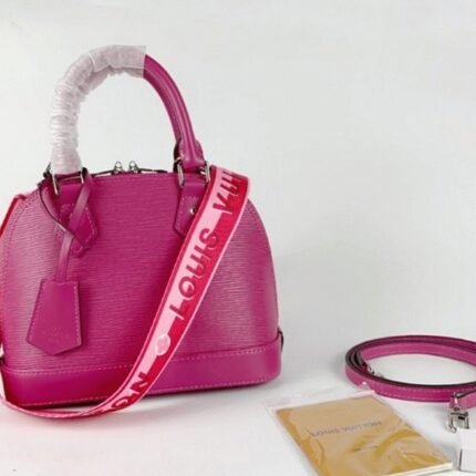 Louis Vuitton Epi Leather Alma BB Handbag In Pondichery Pink With Jacquard Strap