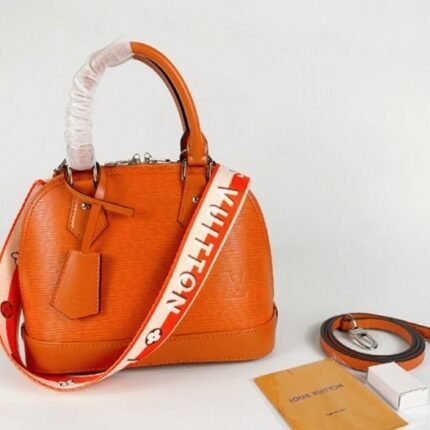 Louis Vuitton Epi Leather Alma BB Handbag In Orange With Jacquard Strap