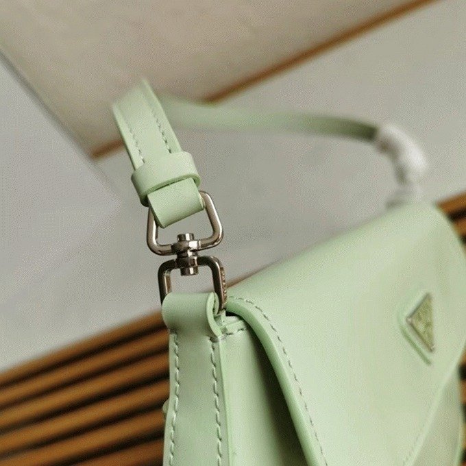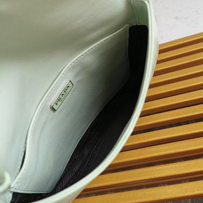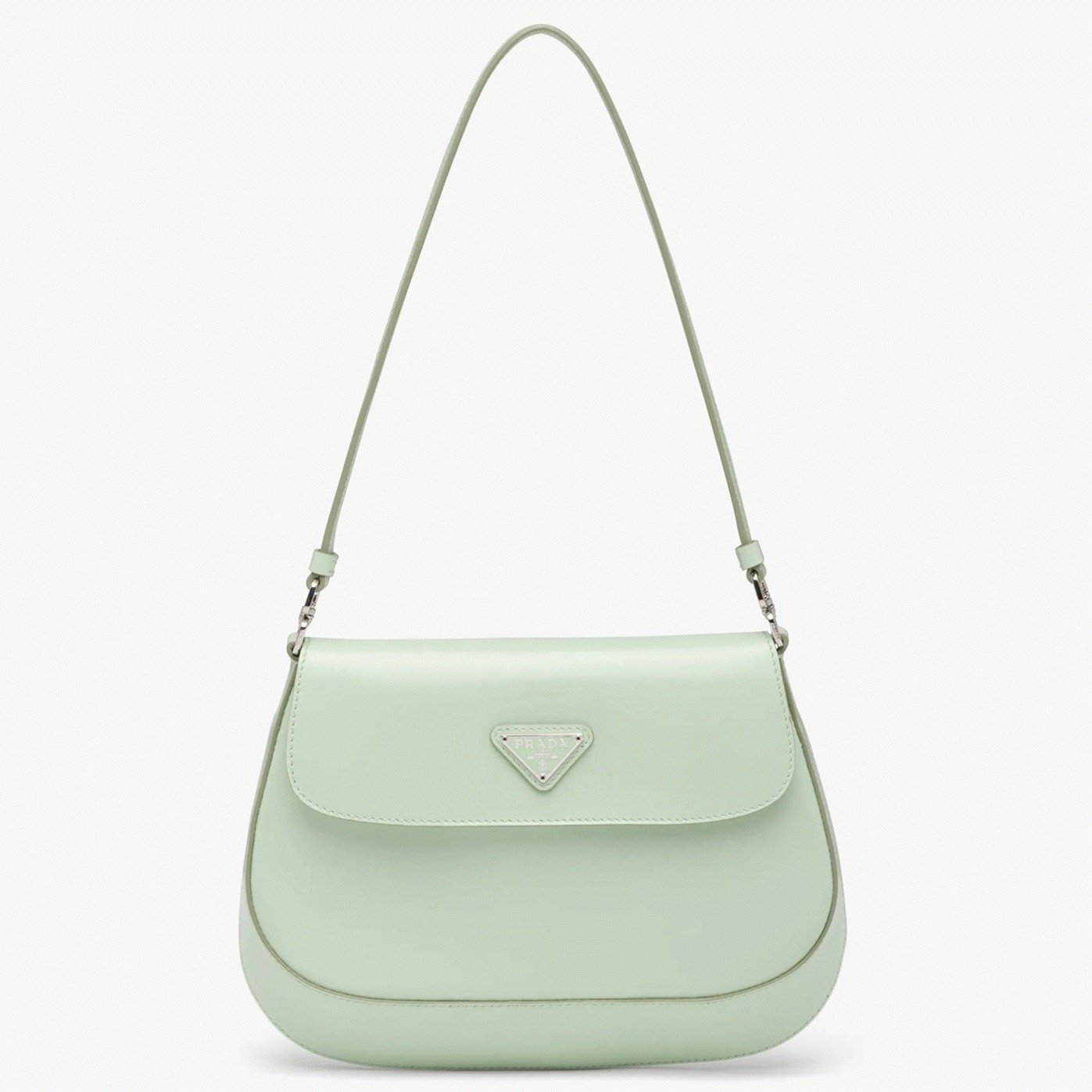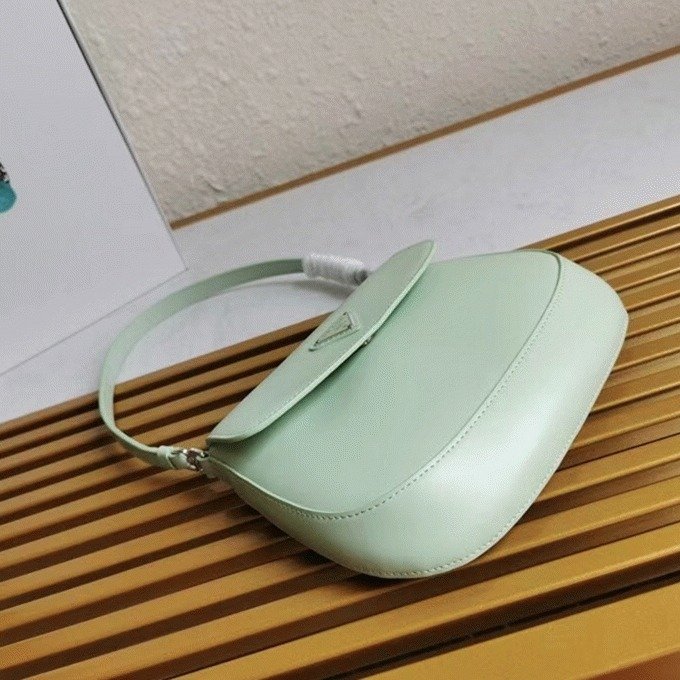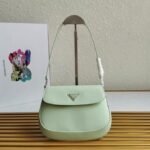The Prada Cleo bag radiates refined elegance, revisiting a classic 1990s design with a fresh perspective. Its smooth, curved silhouette, characterized by rounded edges and a rounded base, gives the flap bag a light and graceful look. Made from brushed leathera contemporary and adaptable material closely associated with Pradathis piece invites countless styling opportunities through its blend of textures and contrasts. The iconic enamel triangle logo on the flap adds a distinguished and elegant finishing detail.