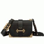 Prada’s shoulder bag, called the ‘Cahier,’ takes its name from the French term for ‘notebook,’ inspired by the look of vintage book bindings accented with gold-tone hardware. Made from smooth blue leather, it features contrasting black Saffiano leather trims and an adjustable long strap for customizable length. The interior is designed with accordion-style compartments to keep daily essentials well organized.