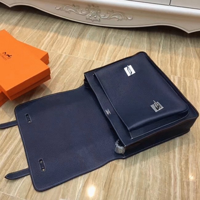 Hermes presents the Steve 35cm Messenger Bag, a perfect combination of elegance and utility. This soft bag is crafted from taurillon Clemence leather, offering a textured look and practical use. It secures your items with two pull-through closures on the top flap.