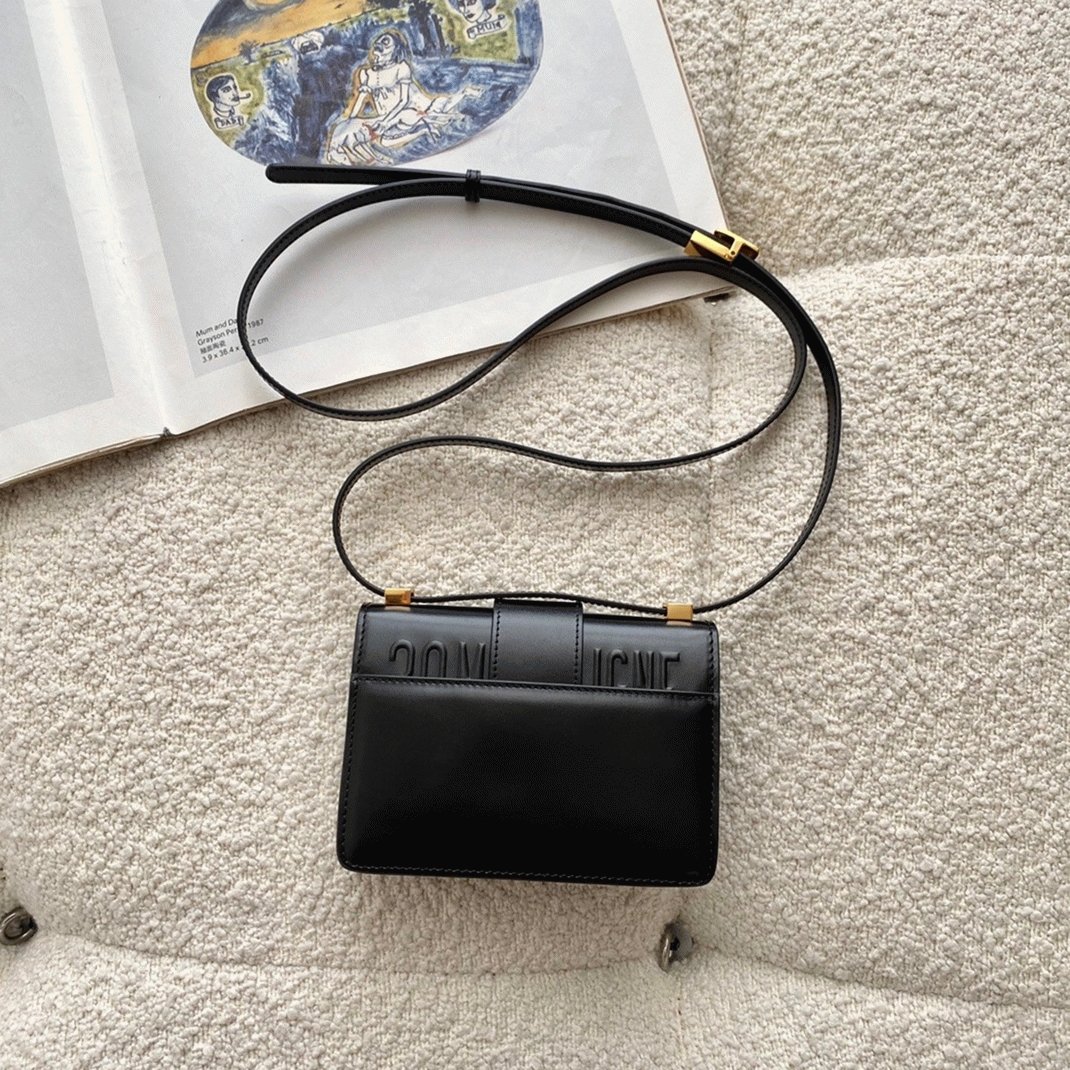 Dior 30 Montaigne Medium Bag Replica in Black Box Calfskin