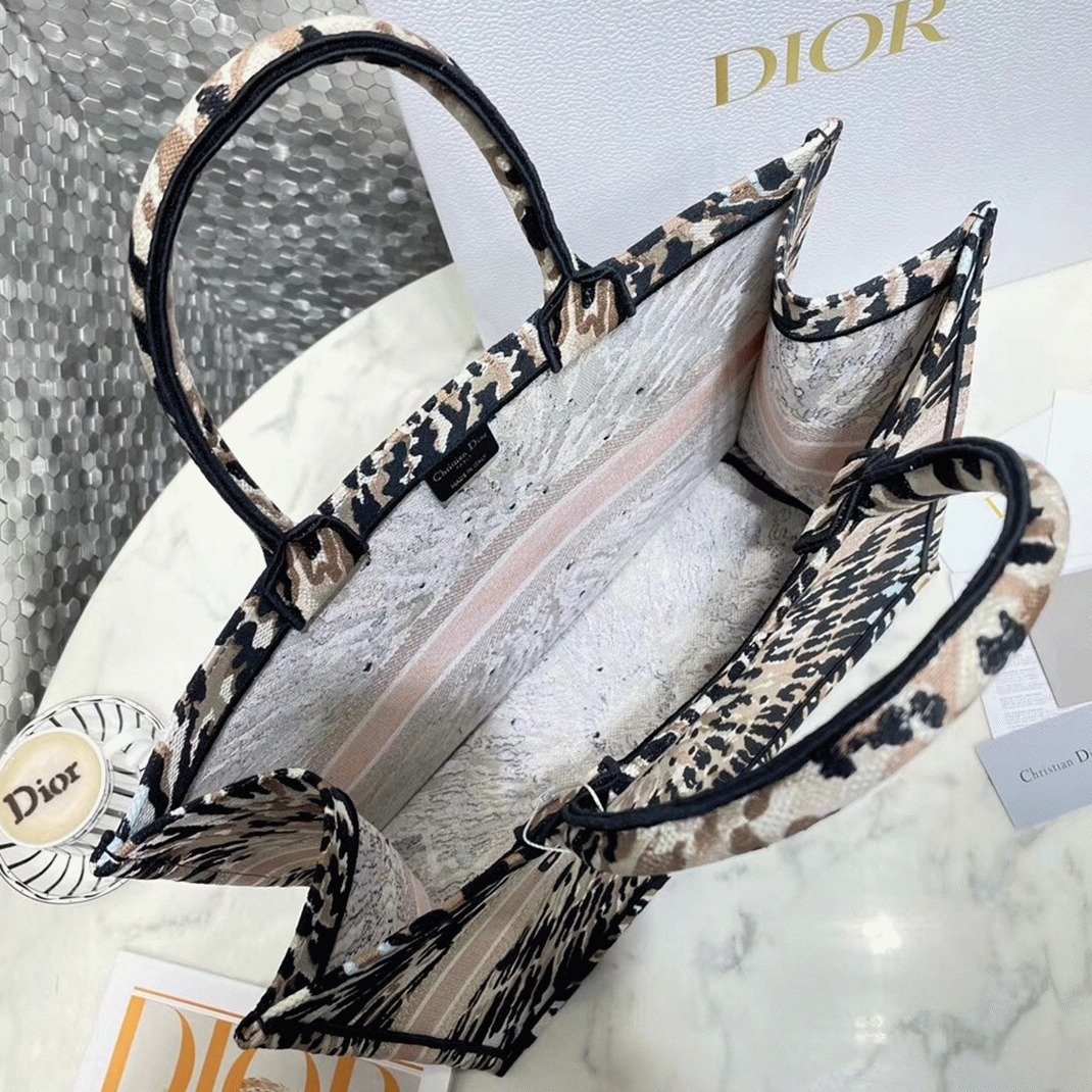 The Dior Book Tote, designed by Diors Creative Director Maria Grazia Chiuri, has become an iconic piece within the Houses collection. This edition, part of the DiorAlps capsule, showcases a fully embroidered blue three-tone pattern featuring Christian Diors lucky star and the prominent CHRISTIAN DIOR signature on the front. Demonstrating the brands exquisite craftsmanship, the tote can be carried by hand or over the shoulder and complements other DiorAlps pieces perfectly.