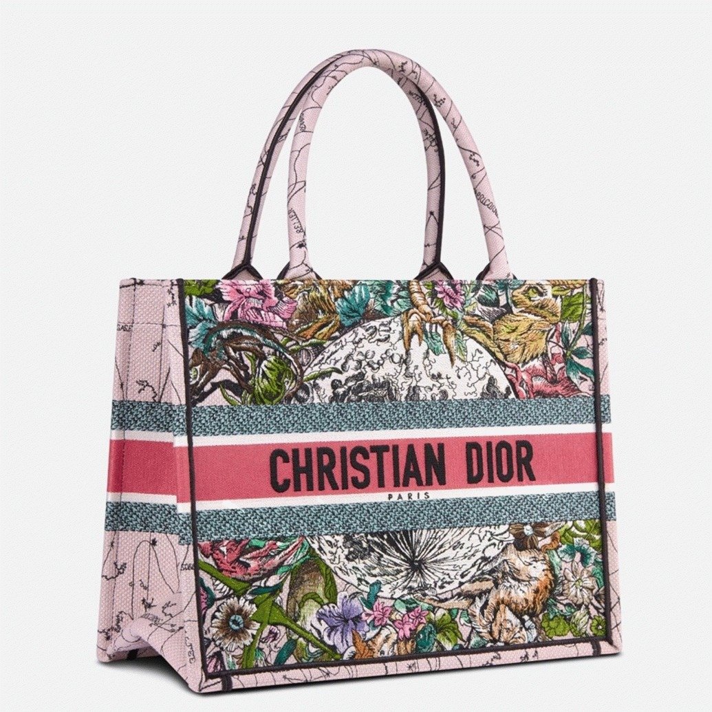 The Dior Book Tote, a signature piece from Diors creative director Maria Grazia Chiuri, has swiftly become a symbol of the Maisons style. Sized perfectly for carrying daily essentials, this edition is fully embroidered on blue canvas. The hand-cut material and fringed edges form a unique camouflage design, accentuated by the Christian Dior signature on the front. This tote showcases Diors exceptional craftsmanship and pairs perfectly with the Mitzah scarf for a polished look.
