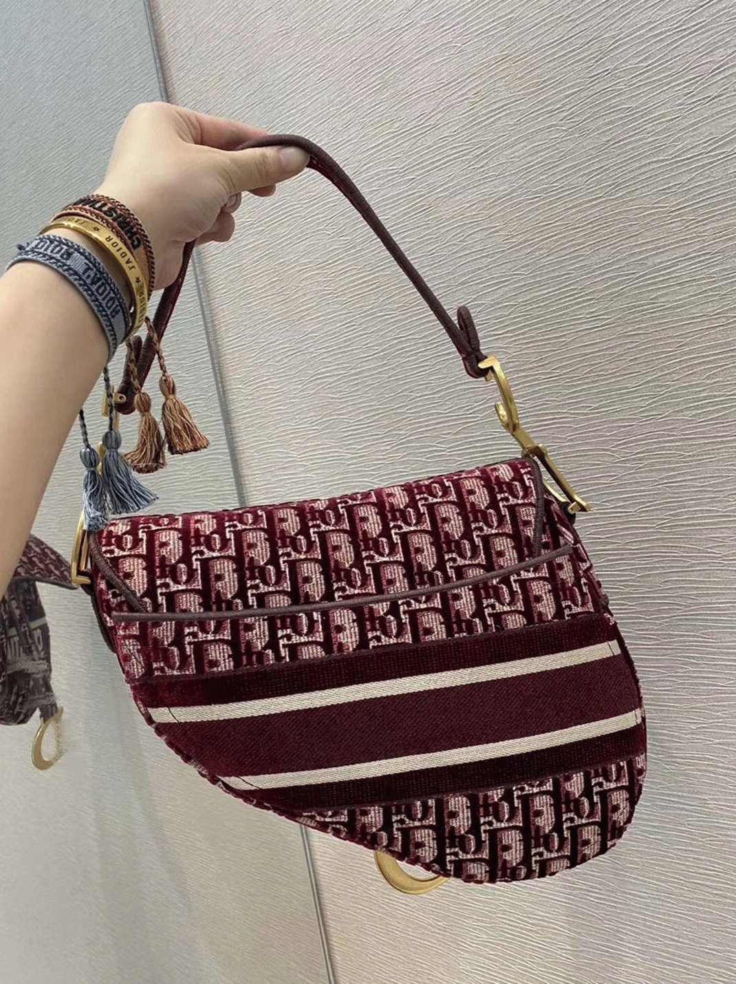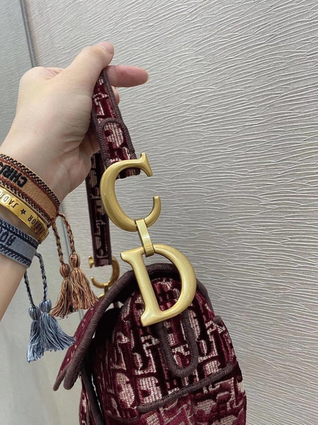 Maria Grazia Chiuri reimagines the iconic Saddle bag with a modern twist, featuring full embroidery in Diors signature Oblique pattern. This timeless silhouette is defined by its classic saddle flap, secured with a magnetic D stirrup closure, and adorned with antique gold-finish ‘CD’ hardware on both sides of the handle. The design allows for versatile wear, either hand-carried or worn over the shoulder, and can be personalized with a variety of shoulder straps.