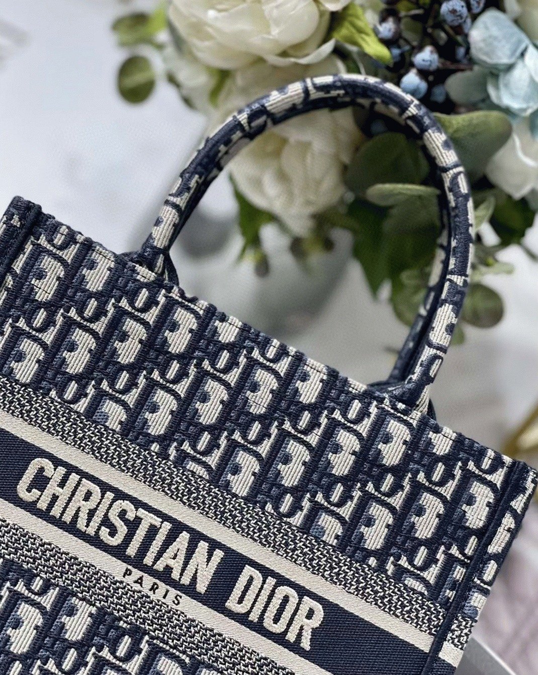 The Dior Book Tote, originally designed by Diors Creative Director Maria Grazia Chiuri, has become a defining piece of the Dior collection. Crafted to carry all your everyday necessities, this compact tote is fully embroidered with the iconic blue Dior Oblique pattern and prominently displays the ‘CHRISTIAN DIOR PARIS’ signature on the front. Reflecting the Maison’s expert craftsmanship, this tote is designed to be elegantly carried by hand.