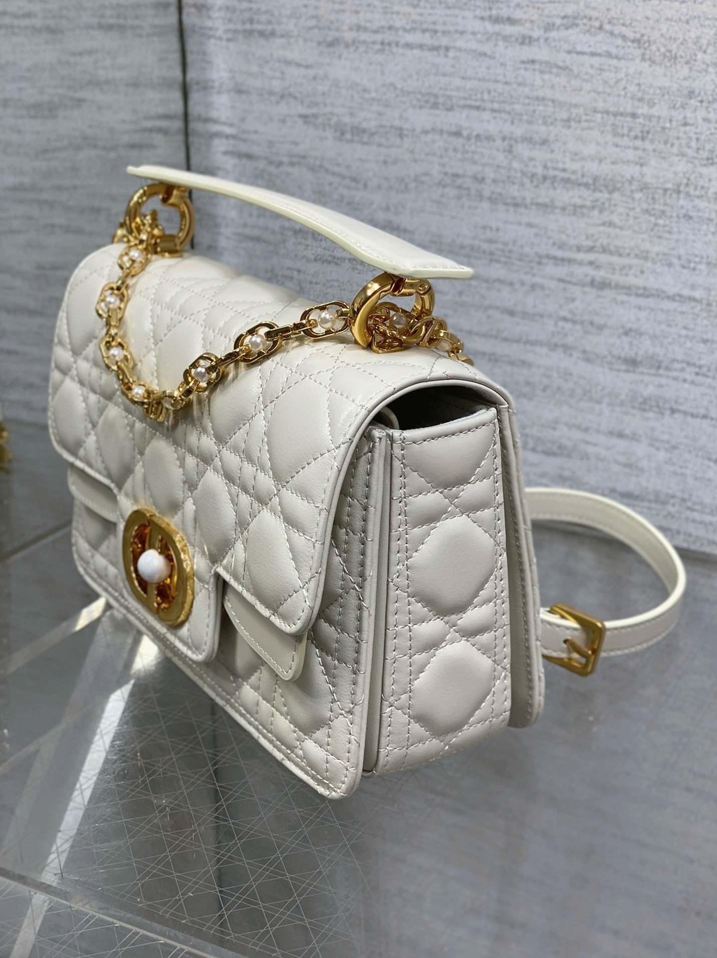 Dior 30 Montaigne Chain Bag with Handle Replica in White Lambskin