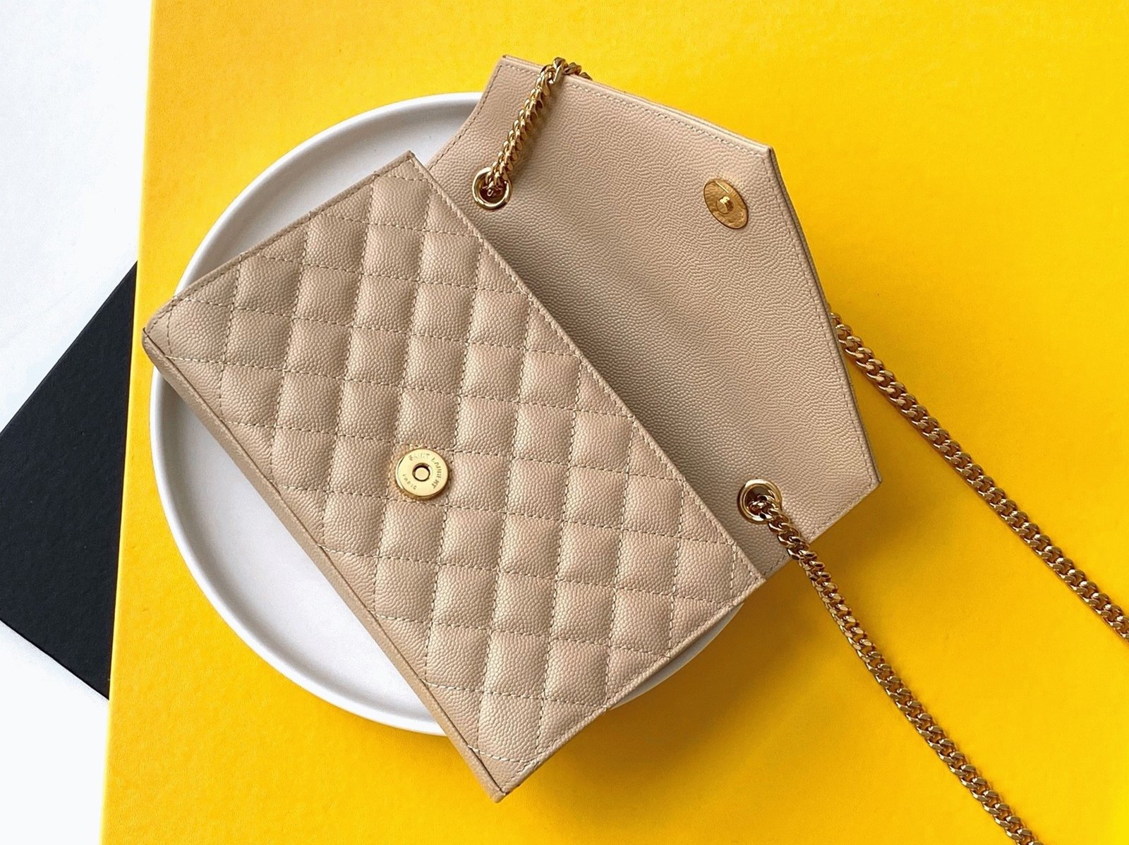 Front flap adorned with YSL initials in metal