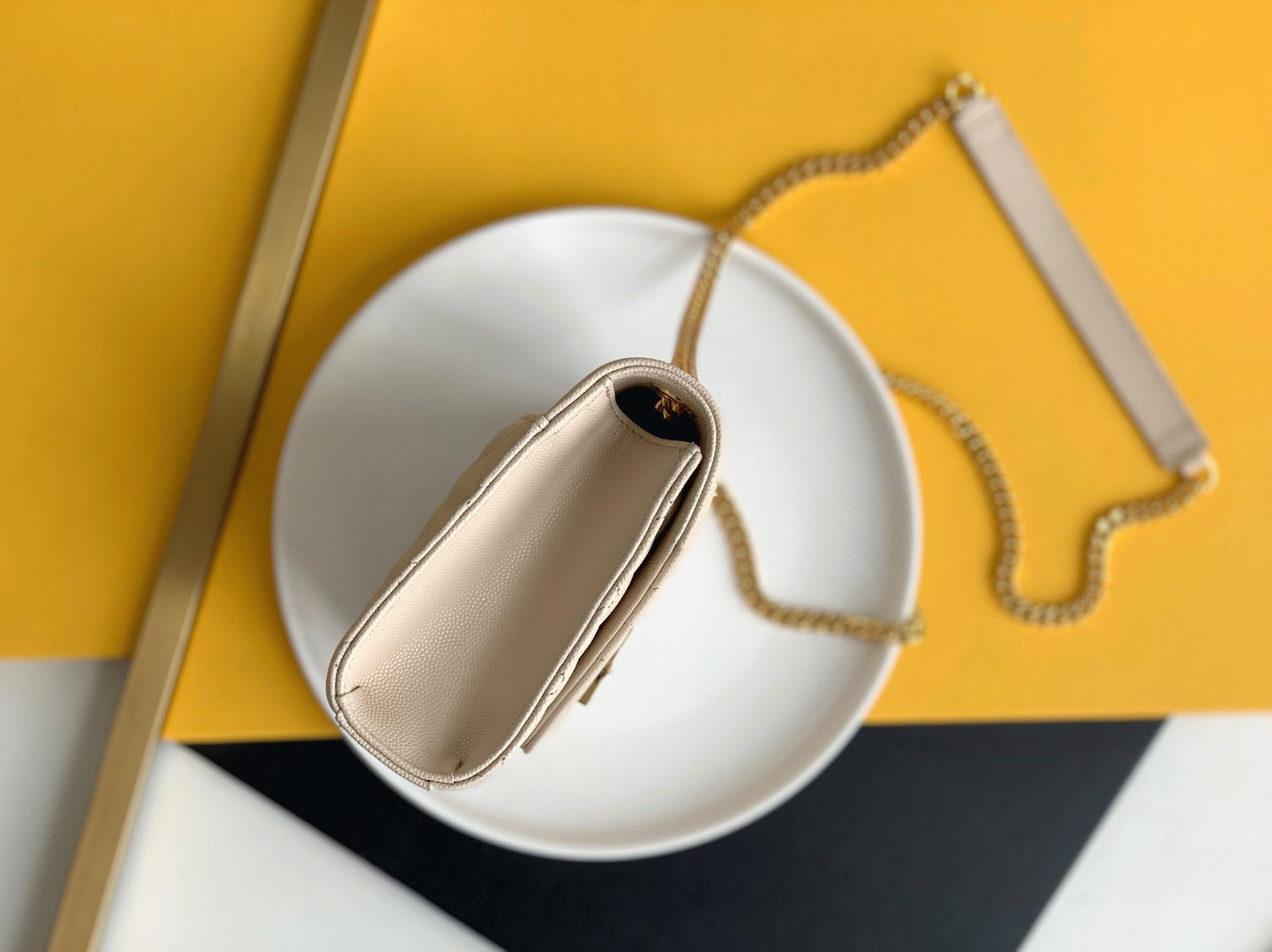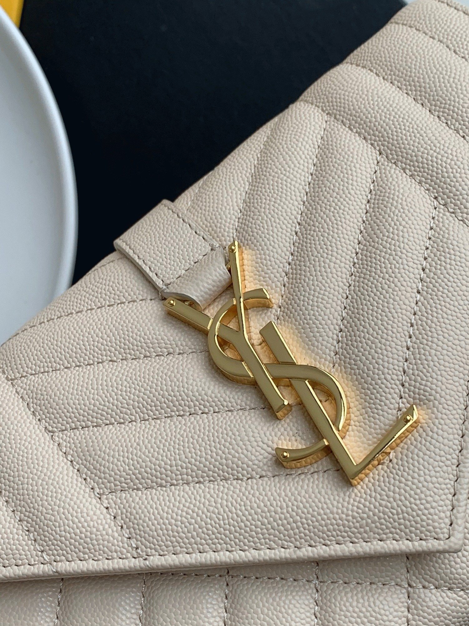 Front flap adorned with metal YSL initials