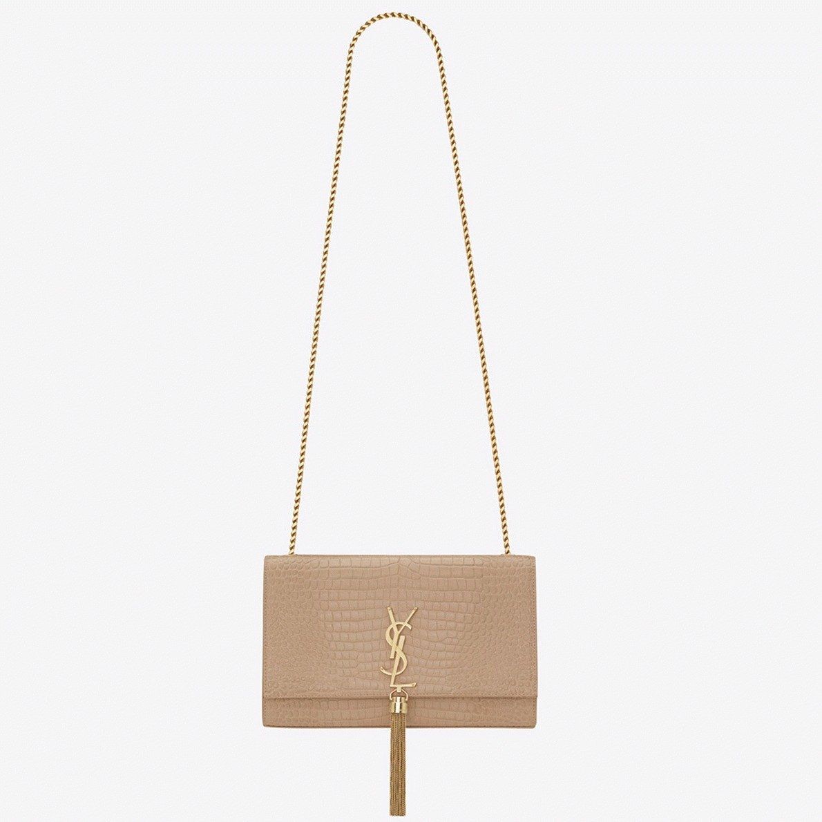 Flap adorned with YSL initials and chain tassel