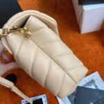 The Loulou Toy Bag, a smaller iteration of Saint Laurent’s classic design, is named after Loulou de La Falaise, the founder’s muse. This calfskin bag is beautifully quilted with chevron patterns and features pockets for your essentials. A removable, adjustable leather strap adds to its functionality.