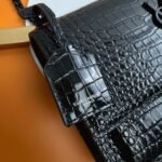 The Saint Laurent Sunset medium bag is a timeless classic, offering a blend of elegance and versatility. Made in Italy from glossy crocodile-embossed calfskin leather, it features the iconic ‘YSL’ logo plaque, a signature from the ’60s. The sleek design is complemented by a stylish chain and leather shoulder strap, adding both sophistication and functionality. The bag’s interior is divided into three compartments, ensuring your essentials are organized and easy to access.