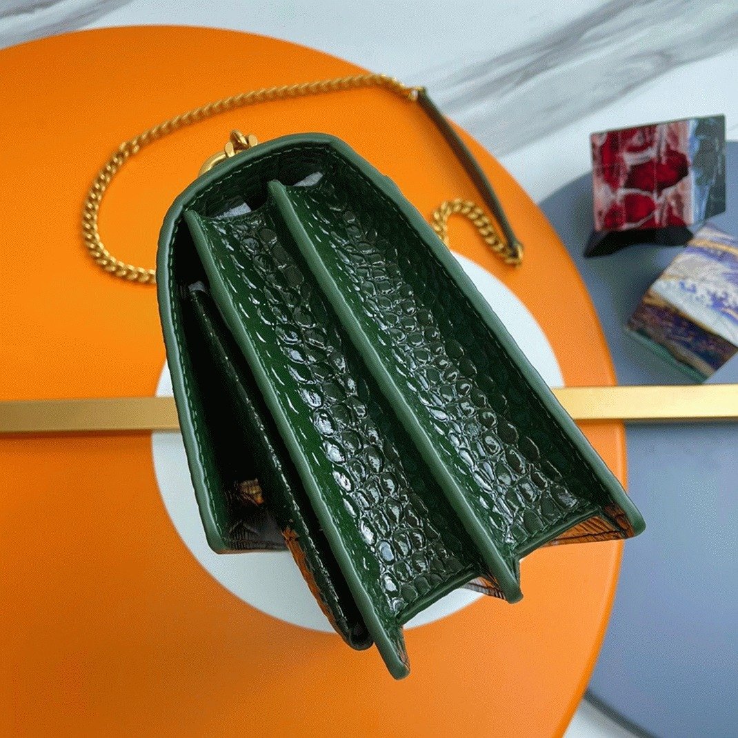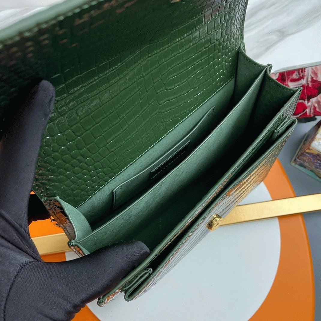 The Saint Laurent Sunset medium bag is a timeless classic, offering a blend of elegance and versatility. Made in Italy from glossy crocodile-embossed calfskin leather, it features the iconic ‘YSL’ logo plaque, a signature from the ’60s. The sleek design is complemented by a stylish chain and leather shoulder strap, adding both sophistication and functionality. The bag’s interior is divided into three compartments, ensuring your essentials are organized and easy to access.