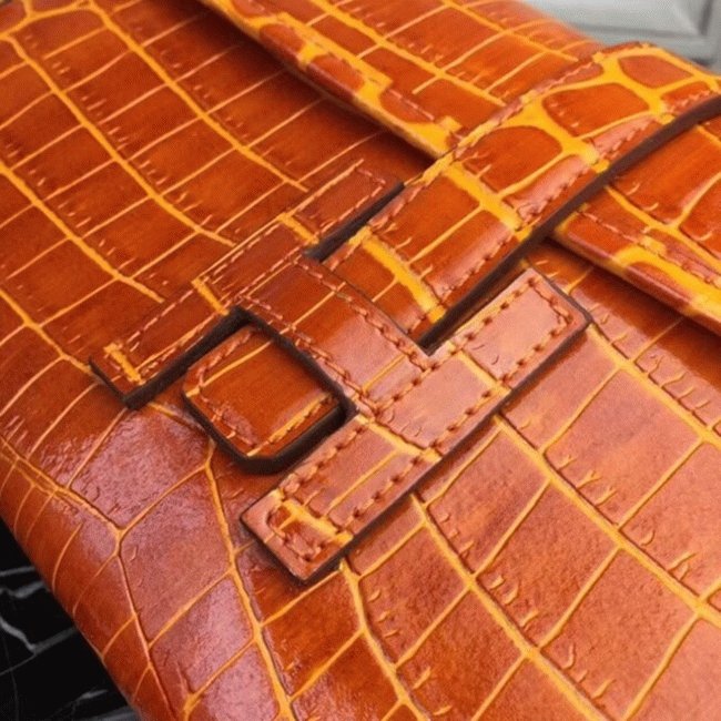 The Jige clutch is defined by its unique compact profile and the iconic H logo clasp. A leather flap tucks smoothly under the H closure and is accented by eye-catching contrast stitching. Its sleek form and minimal hardware give it a refined elegance perfect for casual events, professional settings, and everyday wear.