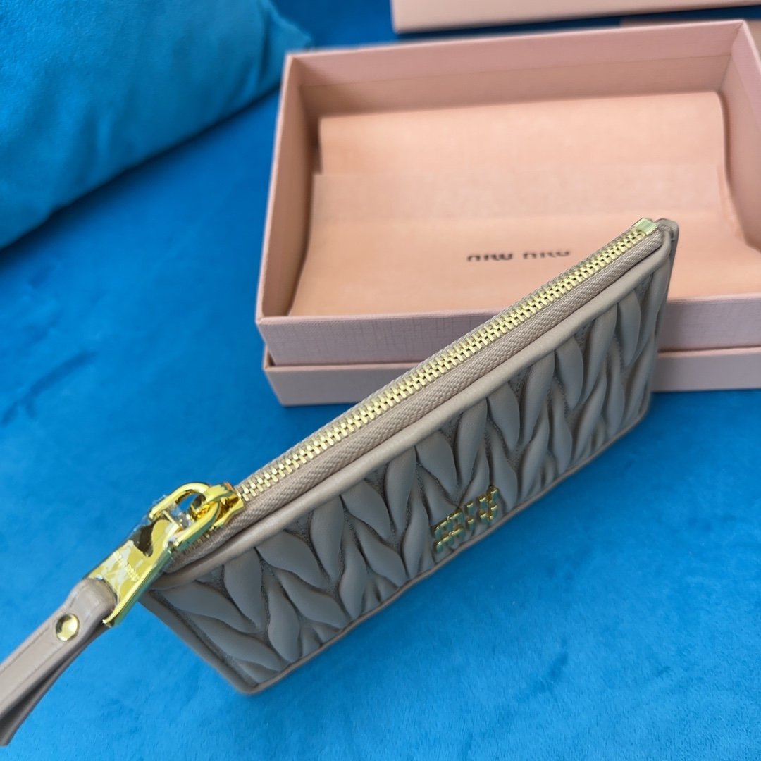 CASSANDRE MATELASSÉ ZIPPED FRAGMENTS CARD CASE IN GRAIN DE POUDRE EMBOSSED LEATHER