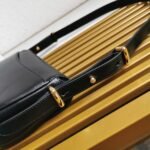Prada presents this shoulder bag as a perfect example of the brands elegant style. Featuring the signature triangle logo, the bag includes a two-tone embroidered shoulder strap that complements the gold-tone lettering logo, all set on a grained leather surface for added texture.