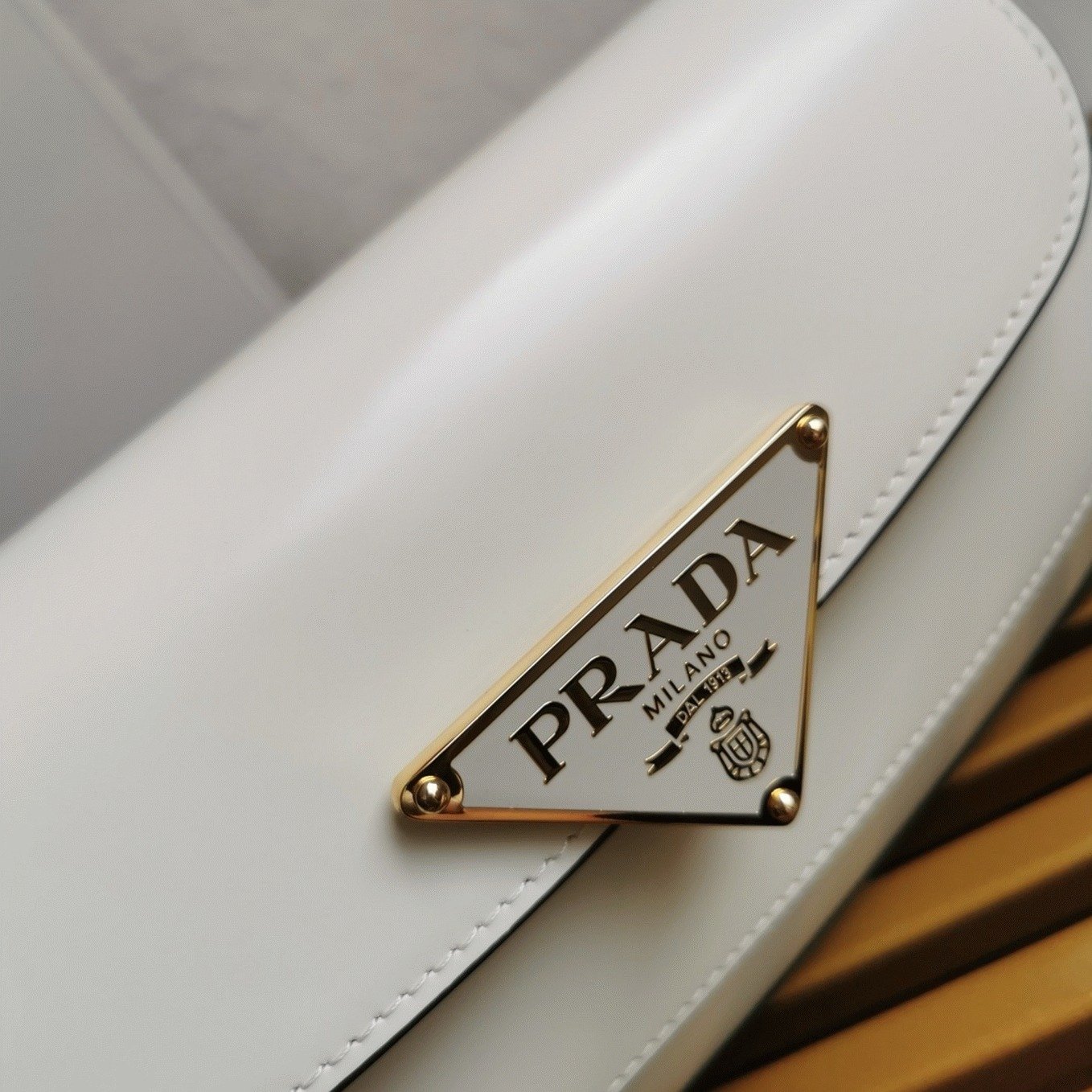 Enameled metal triangle logo on the flap