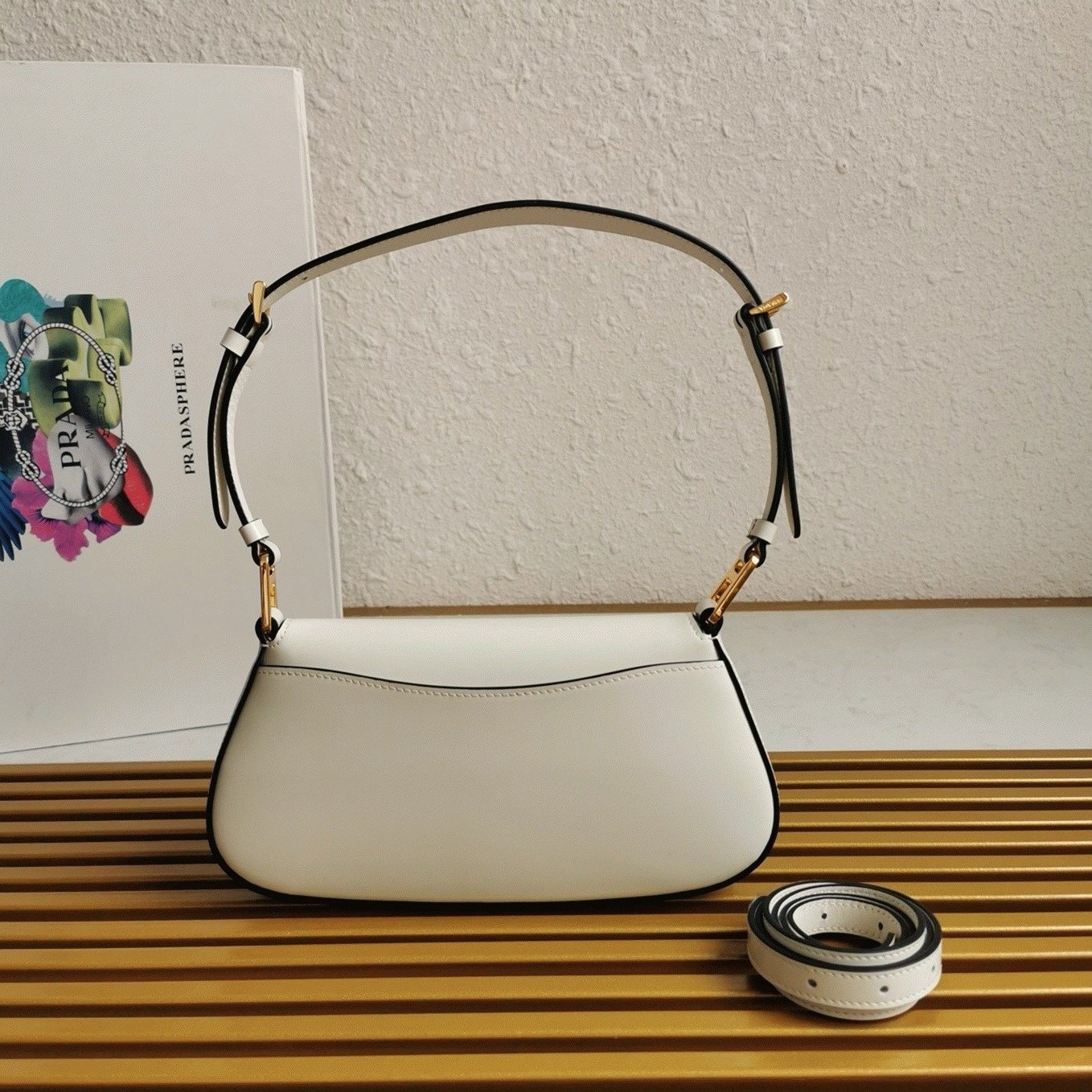 Beige Prada Arque Shoulder Bag with Flap Knockoff