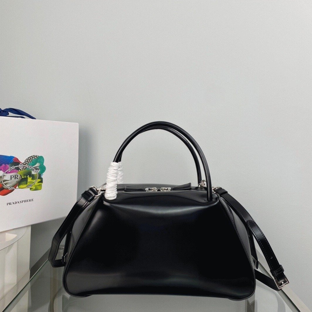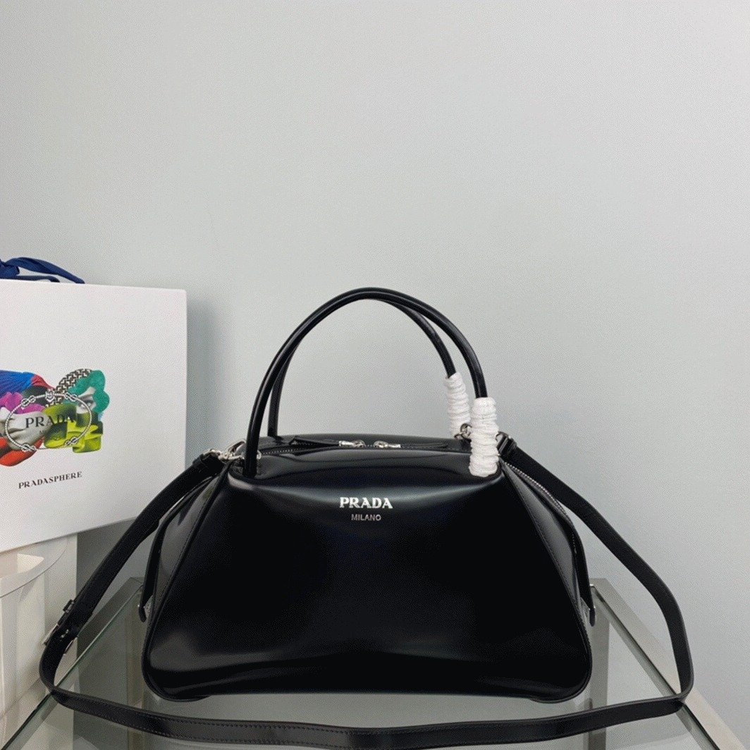 The Prada Supernova Bag made a striking appearance during the brands Fall/Winter 2022 Womenswear Show, carried by models styled in Pradas signature edgy elegance. This medium-sized leather handbag showcases clean, sophisticated lines and a graceful silhouette, finished with a zipper closure that adds a fluid, sculptural touch. Embellished with the iconic enameled triangle logo, it’s a versatile piece suited for both daytime outings and evening events.