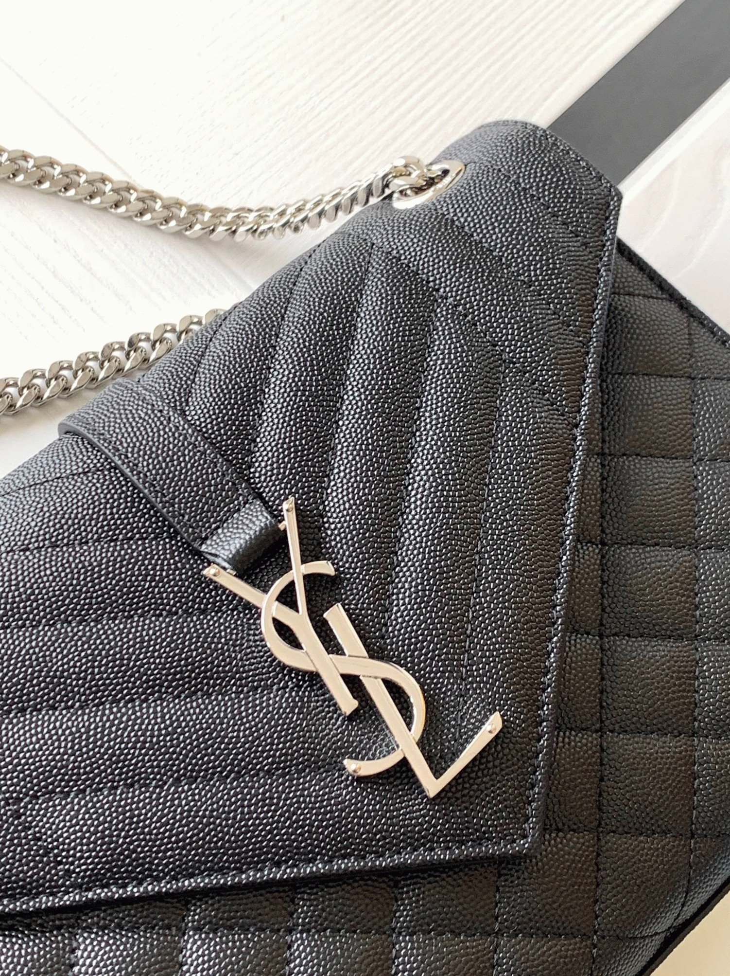 Front flap adorned with metal YSL initials