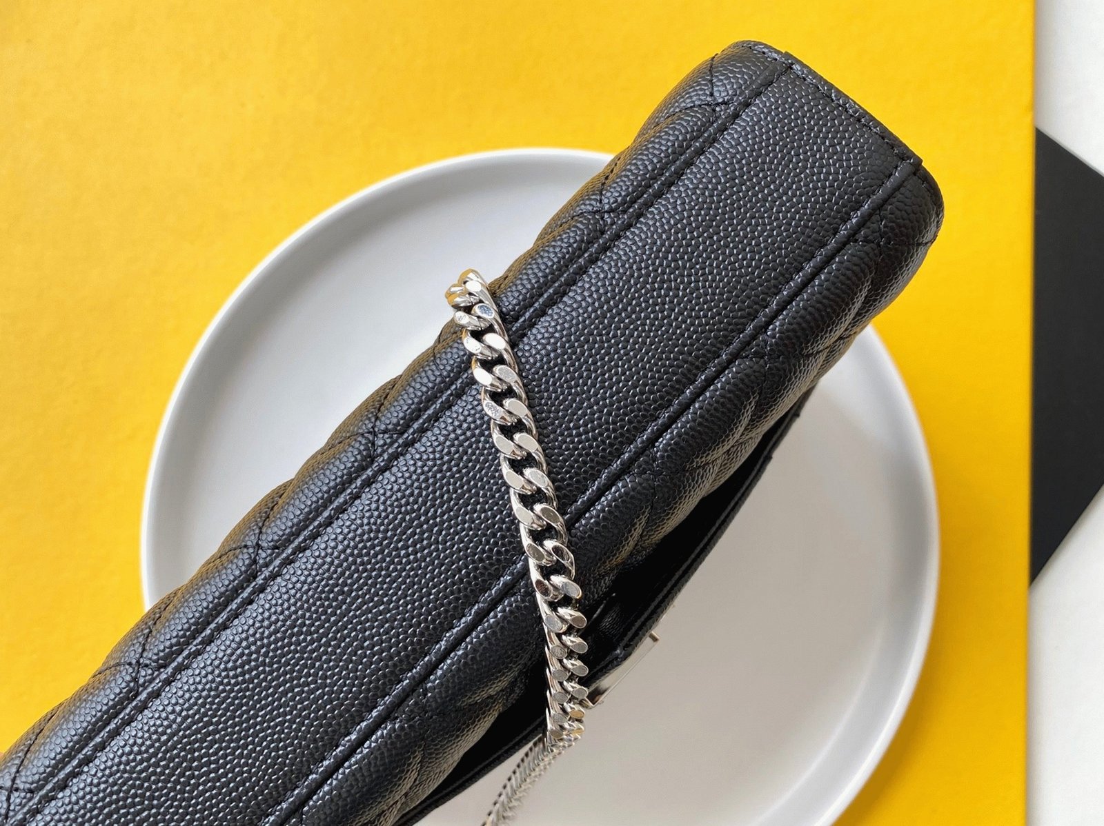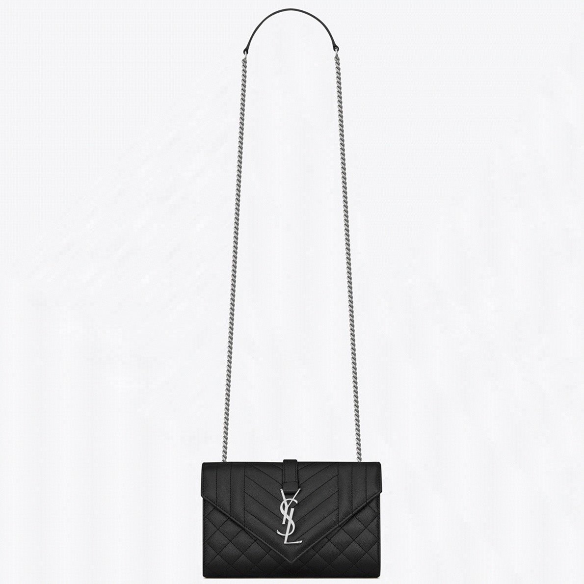 The Envelope Bag by Saint Laurent is a modern classic, instantly recognizable for its iconic YSL logo and distinctive matelassé stitching. The adjustable chain strap allows you to wear it long or short, depending on your daily needs.