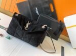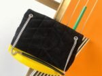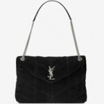 The Saint Laurent Puffer bag honors Loulou de la Falaise, an iconic muse and close friend of Yves Saint Laurent. This luxurious piece is crafted from soft suede calfskin and features the signature YSL plaque at the front. Its versatility is highlighted by a sliding chain strap, allowing you to wear it doubled up as a shoulder bag or extended for a longer fit. Inside, the bag offers ample space, with a zippered pocket for organizing daily essentials like a water bottle, phone, and tablet.