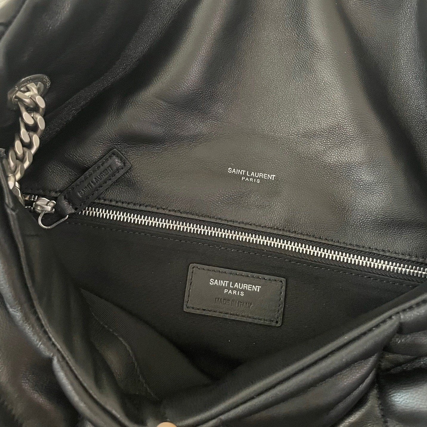 Hardware: Silver-tone YSL initials