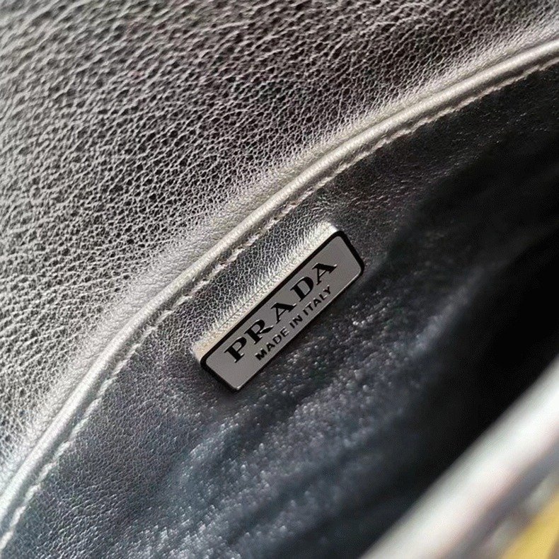 The Prada Cleo bag radiates refined elegance, revisiting a classic 1990s design with a fresh perspective. Its smooth, curved silhouette, characterized by rounded edges and a rounded base, gives the flap bag a light and graceful look. Made from brushed leathera contemporary and adaptable material closely associated with Pradathis piece invites countless styling opportunities through its blend of textures and contrasts. The iconic enamel triangle logo on the flap adds a distinguished and elegant finishing detail.