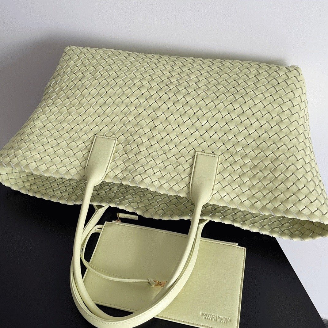 The Bottega Veneta Cabat Bag is a true masterpiece, included in the permanent collection. Its simplicity may seem understated, but it requires expert craftsmanship to bring this design to life. Every detail, both inside and out, is meticulously finished. The standout feature is the iconic intrecciato woven lambskin, a signature style well-known in the fashion world. Spacious enough for a laptop, clothes, and your essentials, it’s both functional and elegant.
