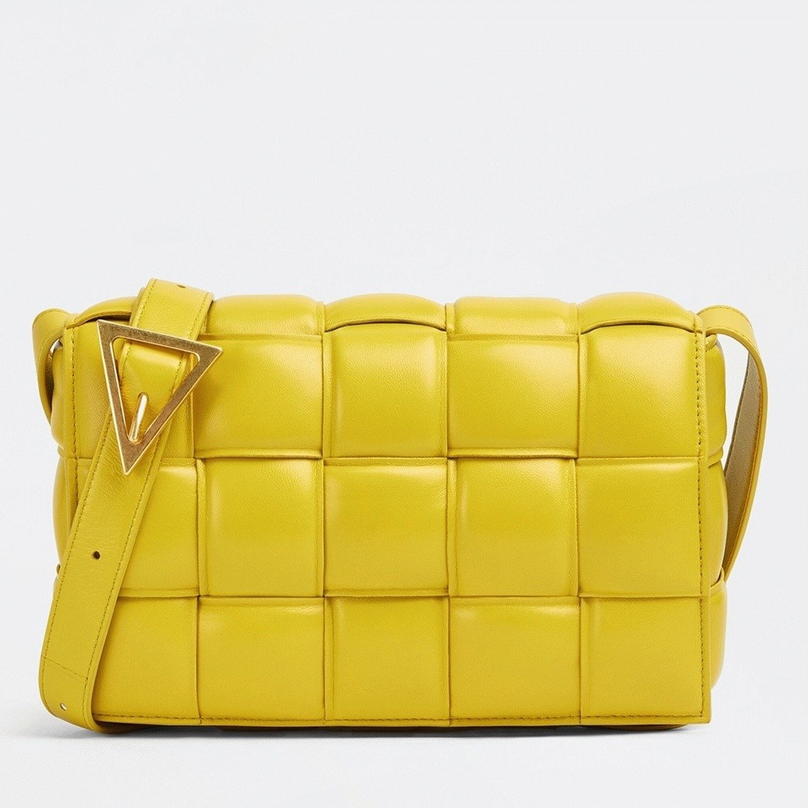 This version of the Cassette bag from Bottega Veneta’s archives features padded, oversized pillow-like weaves that are balanced by smooth lambskin. The bag is secured with a magnet clasp and has an adjustable crossbody strap, with the interior subtly engraved with the brand’s logo.