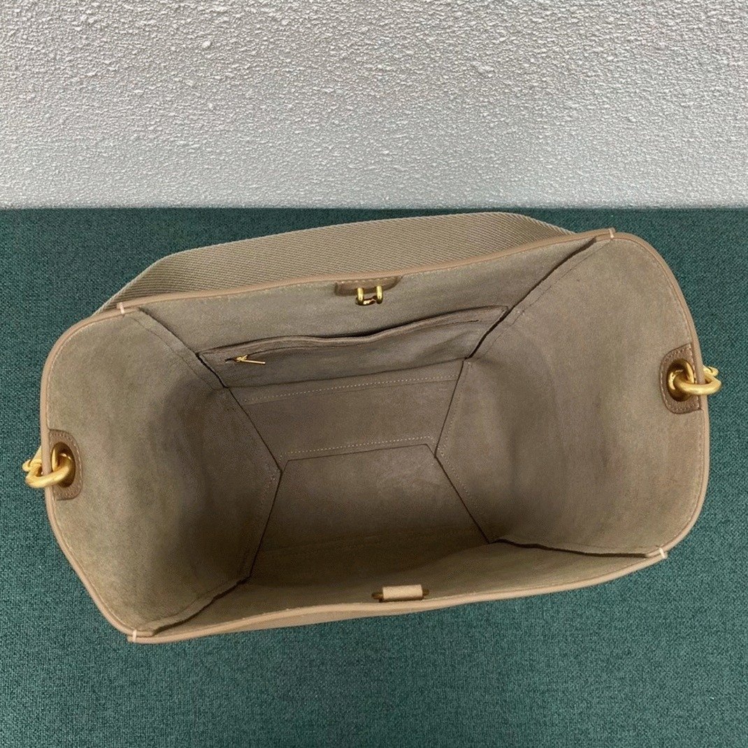 The Celine Seau Sangle shoulder bag may not be the brand’s most famous model, but it has recently gained popularity among fashion enthusiasts who have made it a staple in their wardrobes. This polished and structured bag features a large hook-and-eye clasp, a detachable canvas shoulder strap, and several exterior pockets for added convenience.