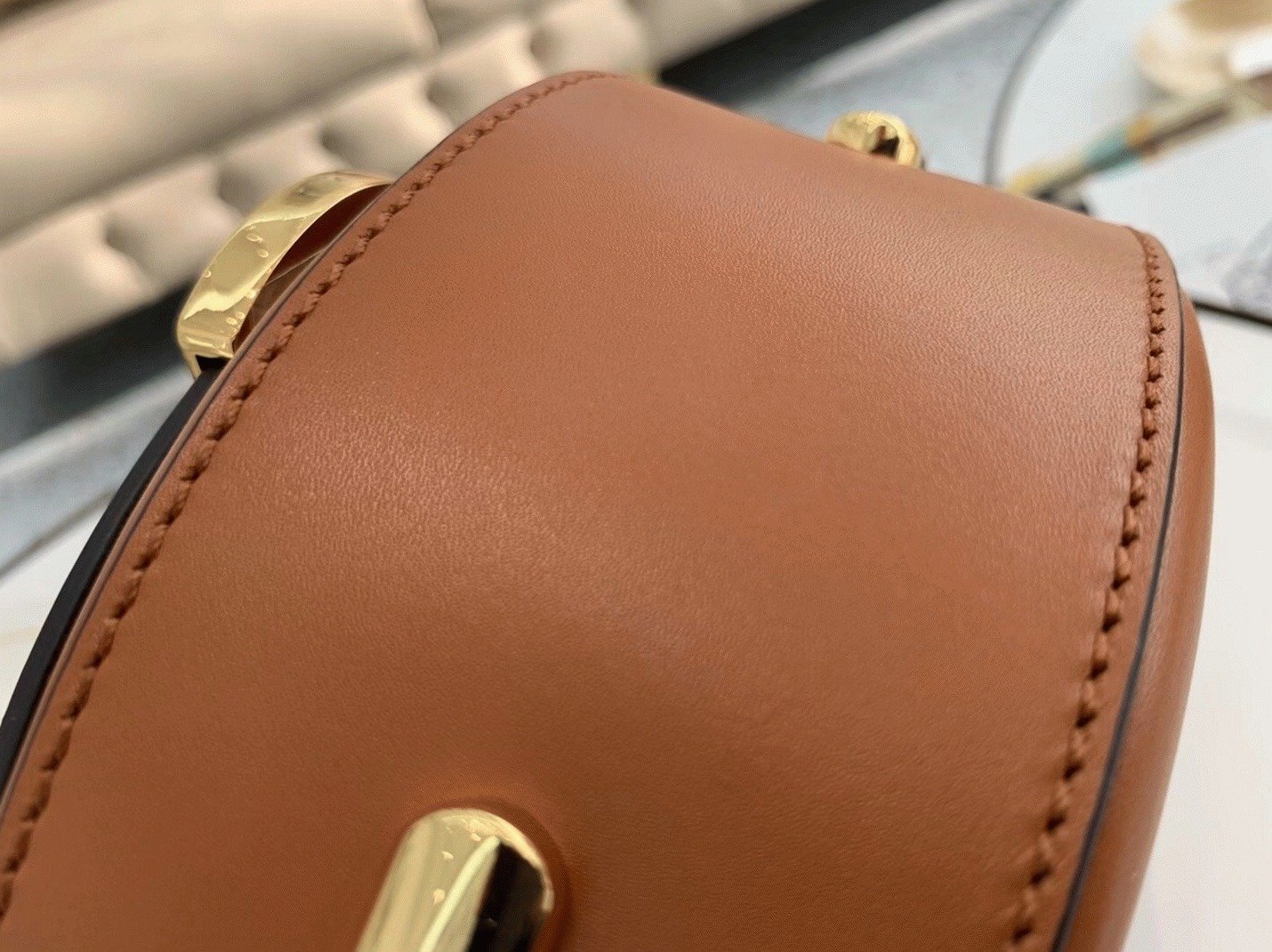 The Moonlight bag takes its name from its crescent shape, which also pays homage to the Lunar Year collection introduced last January, a design cherished by the Maison. This versatile bag can be worn as a crossbody or handbag and incorporates all the signature elements of the Sunshine Shopper in a circular silhouette, highlighted by rigid tortoiseshell accents on the sides. The adjustable shoulder strap features a bold, feminine style with contrasting colors, allowing you to wear it comfortably on the shoulder or across the body.