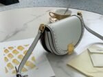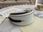 The Moonlight bag takes its name from its crescent shape, which also pays homage to the Lunar Year collection introduced last January, a design cherished by the Maison. This versatile bag can be worn as a crossbody or handbag and incorporates all the signature elements of the Sunshine Shopper in a circular silhouette, highlighted by rigid tortoiseshell accents on the sides. The adjustable shoulder strap features a bold, feminine style with contrasting colors, allowing you to wear it comfortably on the shoulder or across the body.