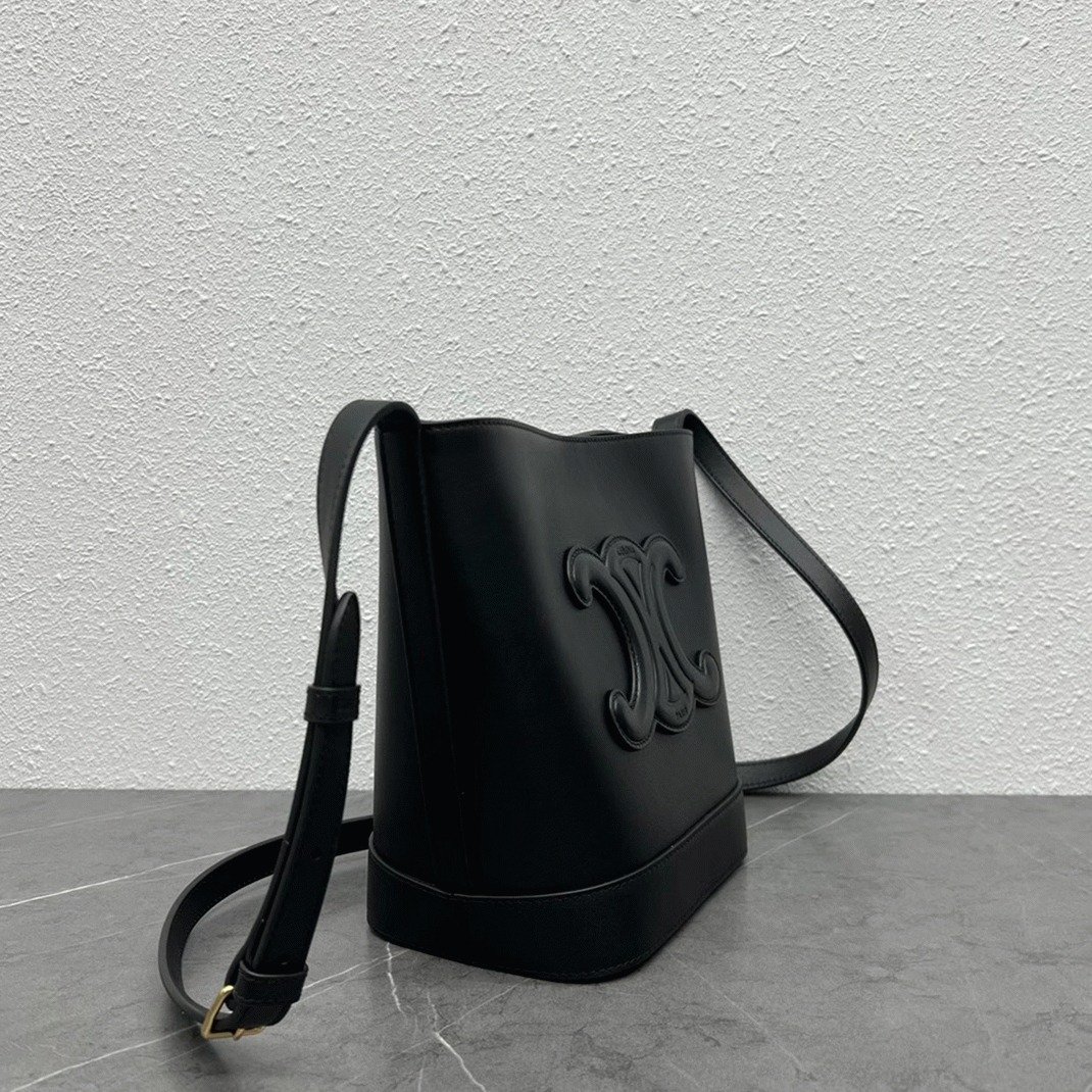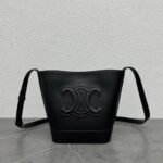 Luxury brands like Celine regularly expand their collections with new designs, including the Small Bucket Bag, which features a prominent Cuir Triomphe logo on the front. Despite its name, this bag offers a roomy interior secured by a simple snap button closure, perfect for carrying all your everyday essentials.