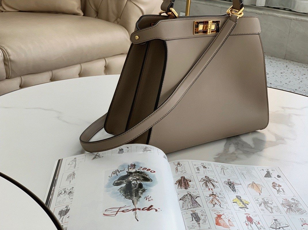 Grey Calfskin Fendi Peekaboo ISeeU Small Imitation Bag