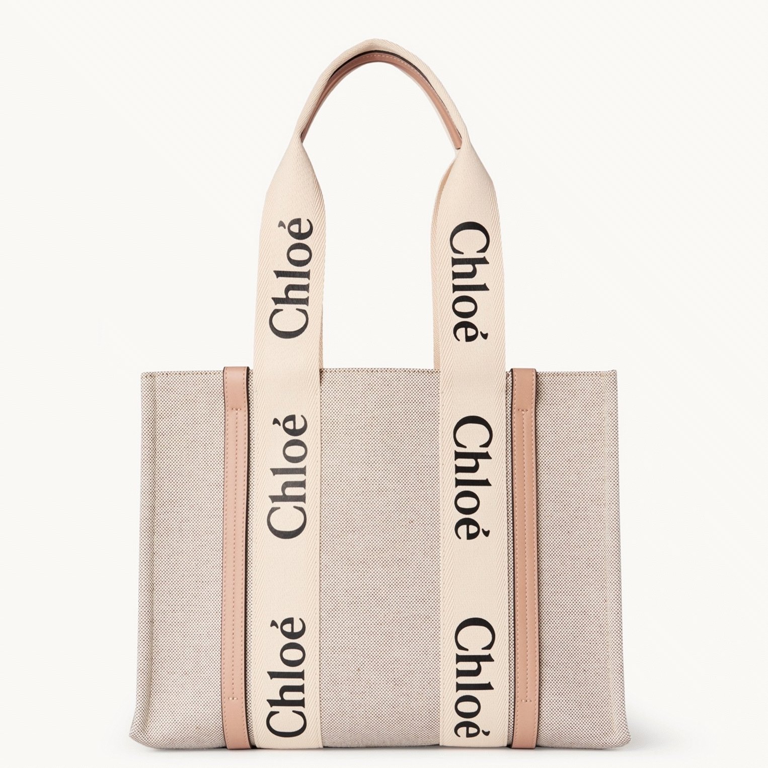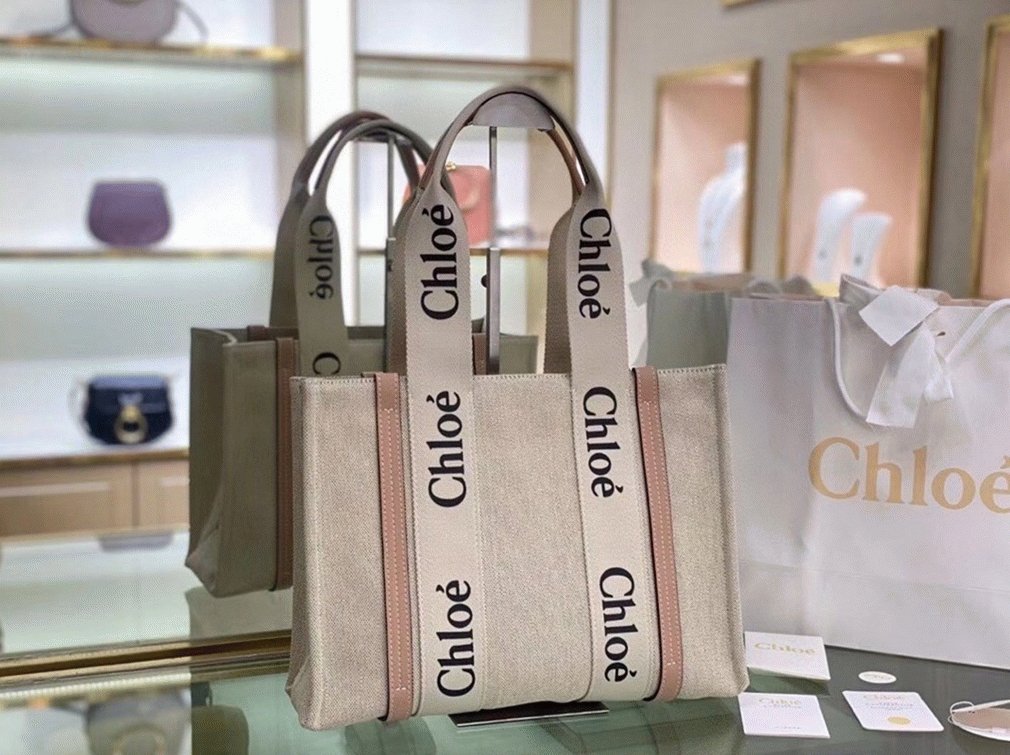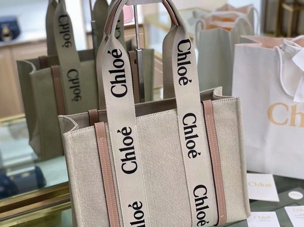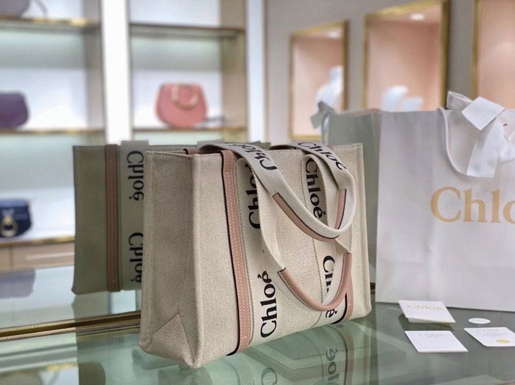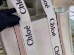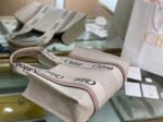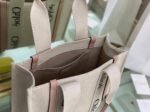 Top Quality Fake Chloe Woody Medium Tote Bag in Linen Canvas with Beige Leather